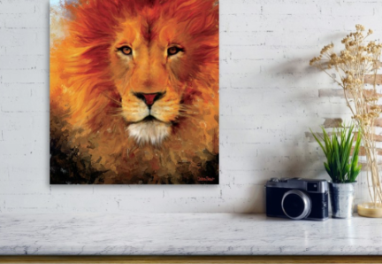 This peice was done during a very hard time in my life where I learned to continually fight for peace. I put on worship music one night and began painting - I saw a fiery face of a lion emerging. As I began painting His eyes I felt a sense of calm amidst the storms of life. This lion was not roaring in anger but tranquil. He began to come to life with fire and power but also with stillness and perfect peace. Jesus is the Lion of the tribe of Judah and He is our Prince of Peace. He is all powerful - His love is an all consuming fire - and His gaze is fixed on you. Trust in Him and allow Him be your defender.